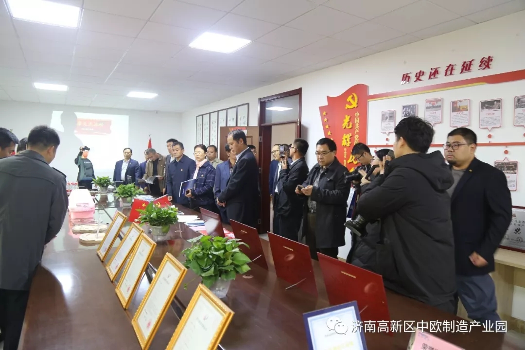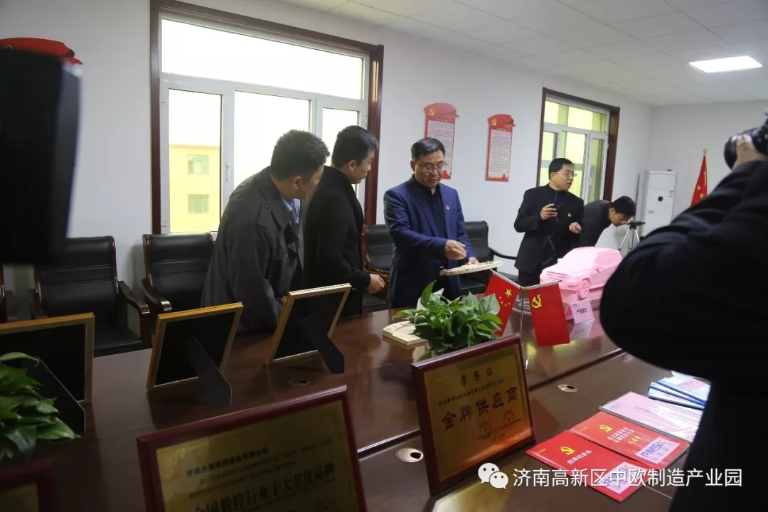 企業(yè)的發(fā)展壯大了離不開(kāi)黨的引領(lǐng)。高新區(qū)是企業(yè)向往的地方,政策好、配套強(qiáng)、服務(wù)優(yōu)。品脈從歷城劃轉(zhuǎn)后,黨員天天盼著早日有一個(gè)組織的家。黨建指導(dǎo)員來(lái)到企業(yè),了解情況、傾聽(tīng)訴求。今年9月10日,品脈支部正式成立,目前有3名正式黨員,2名黨員組織接轉(zhuǎn)中。10月12日,園區(qū)綜合黨總支為新建支部舉行了隆重的成立儀式,李濤同志為支部揭牌、授旗、贈(zèng)書(shū)、劃撥黨建經(jīng)費(fèi),并到公司考察調(diào)研,解決企業(yè)遇到的實(shí)際困難。